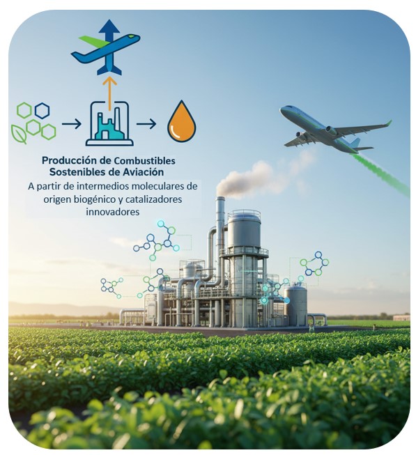 BIOCATFLY es un proyecto coordinado de investigación enfocado en la descarbonización del sector aéreo mediante la producción de Combustibles Sostenibles de Aviación (SAFs). Su objetivo es diseñar sistemas catalíticos novedosos e innovadores para convertir una gran variedad de biomoléculas verdes (obtenidas a partir de biorresiduos) en hidrocarburos sostenibles en el rango del jet-fuel (C₈-C₁₆).