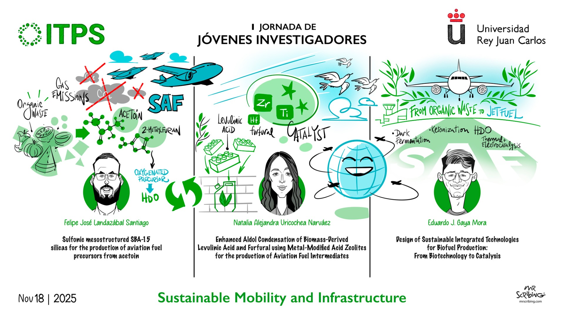El pasado 19 de noviembre, durante la I Jornada de Jóvenes Investigadores del ITPS, tuvimos la participación de nuestros miembros de equipo de investigación del proyecto BIOCATFLY: Natalia Uricochea Narváez, Felipe Landazábal Santiago y Eduardo Joaquín Gaya, quienes participaron en el concurso de vídeos divulgativos "Tu investigación en 2 minutos", una iniciativa dirigida al personal investigador predoctoral del instituto ITPS para impulsar la divulgación científica y mostrar el impacto de su trabajo en la sostenibilidad, en donde 🥉 Felipe José Landazábal fue reconocido con el Tercer premio de esta categoría. ¡Felicitaciones!.