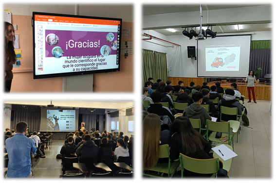Por su parte, Patricia Pizarro visitó el IES Victoria Kent (Fuenlabrada) para impartir la charla "Investigando para poner en valor los residuos orgánicos" a alumnos de 3º de ESO, en la que explicó cómo la investigación impulsa nuevas vías de valorización de residuos y el desarrollo de Combustibles Sostenibles para la Aviación, eje central del proyecto BIOCATFLY, del que es investigadora principal.
